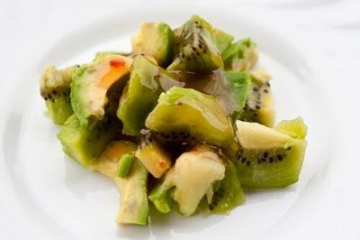 Ma uzsonnára készítettem ezt a kiváló salátát. Volt itthon avokádó és kiwi és gondoltam a kettő remekül illik egymáshoz. Találtam egy német receptet, amit picit átalakítottam. Ez lett az eredménye: