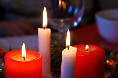 Közben ma az ebédnél már 4 gyertyát gyújtottunk a piros- fehéren megterített ünnepi asztalon.