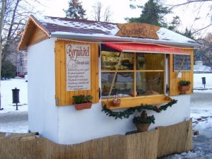 A vásár szélén állt egy házikó, melyre ráírták Falatozzon Szent Pétör serpenyőjéből. Itt kóstoltam forralt bort, sült fehér- és vörös kolbászt, fokhagymás, gyömbéres csirkét és csalamádét, hozzá fűszeres hajában sült krumplit. Minden nagyon finom volt. Péter Ferenc, a tulajdonos elmondta, hogy szívesen elutaznak rendezvényekre is. (Én szívesen látnám őket az EMI táborban. 🙂 )