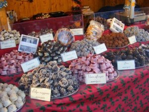 Megálltunk a vásárban is, nem vásárolni, hanem megkóstolni néhány dolgot. Bőséges volt a választék, viszont nem igen voltam éhes. Nagyon szép kézműves marcipánokat és szaloncukrokat árultak. Vittem haza Tokaji aszús és villányi vörösboros marcipánt.