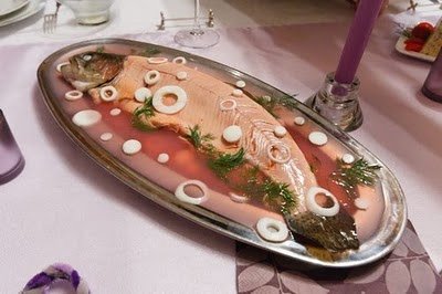 – A pisztrángot kivesszük az edényből, egy vágódeszkára tesszük és lehúzzuk a bőrét, kivétel a fejénél és a farokuszonyánál. Letakarjuk egy nedves konyharuhával.