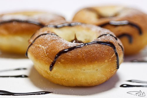 Közben olajat forrósítunk a serpenyőben. Mikor elég forró, akkor beledobjuk a fánkokat, de csak amennyi elfér, nem kell zsúfolódniuk. A lyukas közepe lesz alul. Ha azt akarjuk, hogy szalagos legyen, akkor 3 perc után körülbelül megfordítjuk és 1 percre rátesszük a fedőt. Amikor készen van egy szalvétára tesszük lecsöpögni. Különösen figyelni kell az olaj hőmérsékletére, mert ha nem elég forró, akkor megszívja magát olajjal, ha pedig túl forró, akkor megfeketedik és nem lesz szép világos aranybarna.