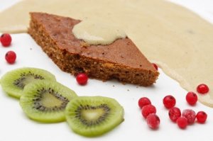 Mivel a sütemény és az öntet is édes, kínáltam hozzá savanykás gyümölcsöt is.