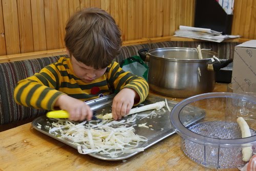 A spárgát előkészítjük és sós vízben körülbelül 15 percig főzzük. Az epret megtisztítjuk és négy darabra vágjuk.