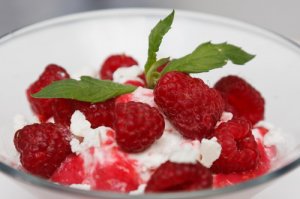 – minimum 500 gramm málna- egy részét botmixerrel pár csepp tejjel összetörtem, a többit pedig egészben tettem a tetejére. A gyümölcsöt már szigorúan cukor nélkül kell felhasználni, mert a desszert édesítője gyakorlatilag a habcsók.