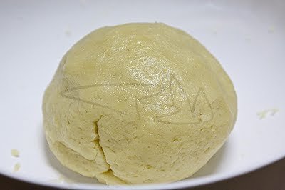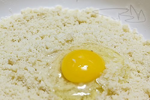 A közepére beletesszük az egy tojást és lágy tésztát gyúrunk belőle.
