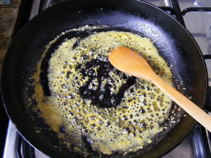 Megfőzzük a spagettit. Egy serpenyőbe belereszelem a citrom héját, majd ráteszem a vajat és közepes lángon felolvasztom.