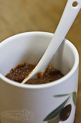 A mogyorót zsiradék nélkül megpirítjuk. A fügét, az olajos szardellát, a fokhagymát kicsi darabokra vágjuk, majd egy botmixerrel összetörjük. A 60 ml olívaolajat lassan hozzácsurgatjuk, közben tovább keverjük. Mikor szép sima a krém, akkor készen is vagyunk.