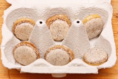 Kiválasztottam a mákos macaront angol citromkrémmel. Piszke írása itt található. Mindenre figyeltem. A hab állagára, a mandulára, a porcukorra, mindenre. A hab nem lehet kemény, pontosan el kell találni a megfelelő állagot. Először felvertem a tojásfehérjét egy kicsi cukorral, majd óvatosan belekevertem a mandulás porcukrot. Itt kicsit izgultam, de sikerült, nem esett össze a hab. Aztán pontosan ahogy Piszke írta egy sütőpapírra rajzoltam köröket. Pont 49 lett az 50 Ft.-os méretéből. A körök közepére raktam a habból. Én a zacskóval sokat kínlódtam, mindenem ragadt közben. Utána átraktam a habot egy műanyag kinyomóba, úgy már könnyebb volt. Mondanom sem kell, hogy a körök dacára sem sikerült egyforma karikákat alkotni. Egy kicsit kell nyomni a habból, mert utána a pihentetés közben szétterül. Hát nekem volt, ami össze is folyt. Következik a sütés. Pontosan követtem Piszkét. 160 fokon kell sütni 8-9 percig, majd lehűteni a sütőt 130 fokra. Ezt a legegyszerűbben úgy lehet, hogy a sütőt kinyitjuk kicsit. Körülbelül 5 percig szárad ezen a fokon. Dupla sütőpapírt kell használni. Lássuk mi történt az én macaronjaimmal. Villanysütőt használtam, amibe még egy hőmérőt is tettem. A tepsi belsején lévők megrepedtek, ami hiba, a közepe szép lett, az eleje pedig nem száradt ki eléggé. Levontam a következtetést, hogy nem egyenletes a sütőm, ezért gyorsan meg kell forgatni a tepsit közben. Maradt néhány adag a következő tepsire. Betettem őket középre. Ezúttal szebben sikerült kinyomni a habot, szépen elterült. Ezek sem lettek tökéletesek persze. 🙂 Nagyon szépek lettek, de a talpuk picit megbarnult. Hát ez sikerült elsőre. Alig várom, hogy megint kipróbáljam. Ja és a mákos macaron isteni finom! Azóta Piszke is ellátott néhány jó tanáccsal, sikerülnie kell legközelebb. 🙂