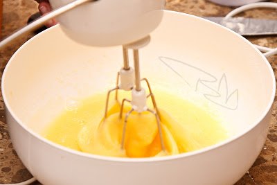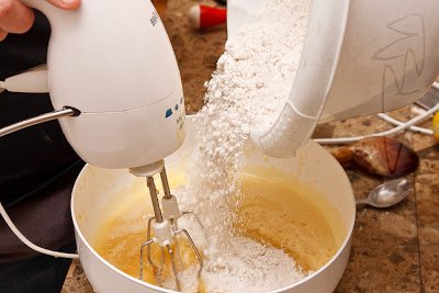 Amikor kihűlt a mézes vaj, akkor hozzákeverjük a tojásokhoz, majd lassan hozzáöntjük a lisztet és jól elkeverjük. Én a mixer egyes fokozatával kevertem.