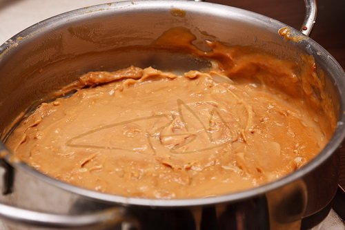 A cukrot és a lisztet összekeverjük, majd felengedjük egy kevés tejjel. Simára keverjük. A maradék tejet a tűzre tesszük és mikor felforrt lassan hozzákeverjük a lisztes, cukros tejet. Állandóan kevergetni kell. Sűrűre főzzük. Ezután lehúzzuk a tűzről.
