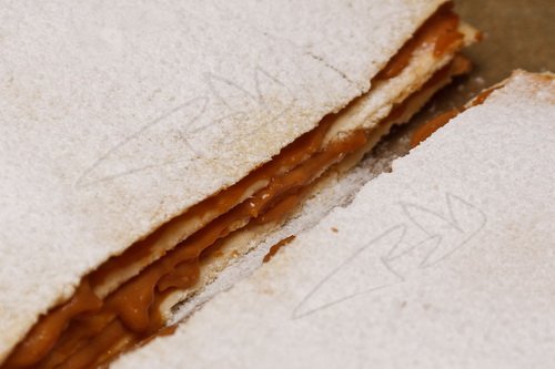 A kész lapokat állni hagyjuk néhány órára, majd megtöltjük a krémmel. A tetejére vaníliás cukrot szórunk, majd másnap szeleteljük fel. Sokáig finom és friss.