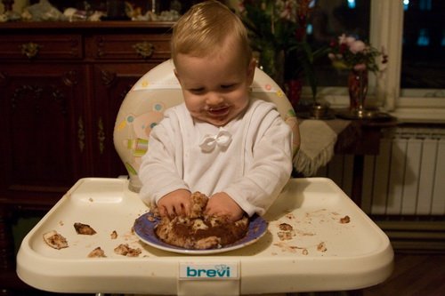 Juj, a baba nagyoon édi, ahogy tömi magába a fincsi tortát. Bár én nem vagyok baba, de meg fogom csinálni, mert imádom a tejbegrízt. 🙂
