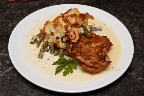 Mi sült csirkével tálaltuk, de persze nem kötelező. Szerintem hús nélkül is remek főétel.