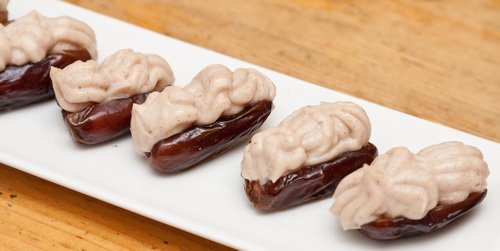A datolyákat kimagozzuk ügyelve arra, hogy ne szakadjanak el.