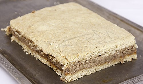 A lekvárral megkent lapra rávisszük a tölteléket, lehetőleg még melegen, majd rátesszük a tetejét is.