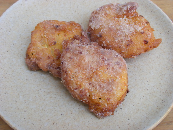 Forró olajban kisütjük, majd cukrozott, fahéjas porcukorral leszórjuk.