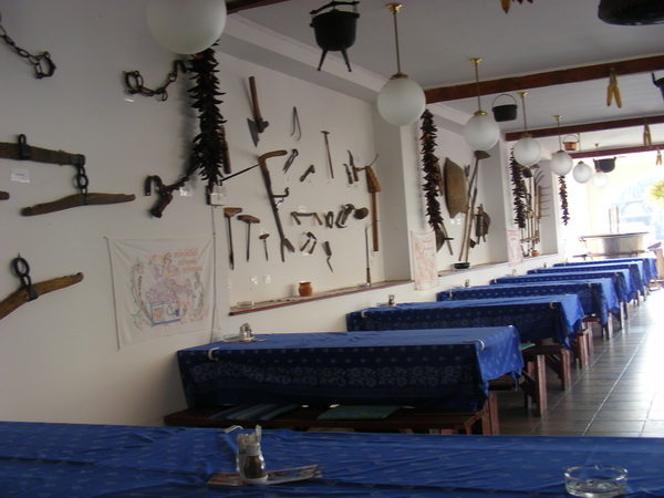 Viszonylag éhesen egy hosszabb utazás után álltunk meg enni a Fehértói halászcsárdában. A hely légköre elsőre megragadott. A falakon kiállított tárgyak, a díszítésül szolgáló szárított paprika füzérek, a kukoricák és a bográcsok igazán kellemes hangulatot kölcsönöztek a helynek. Nagyon tetszett a torony is, amelyre fel lehetett mászni, a gyerekek meg is nézték, míg vártuk az ételeket.
