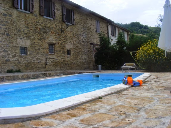 Az idén Modigliana-ban foglaltunk szállást Emilia – Romagna tartományban. A helyre az interneten bukkantunk, miközben szállásokat keresgéltünk a környéken. Olyan helyre szerettünk volna menni, ahonnan könnyen elérhető a tenger Rimini és Ravenna, de Firenze és más toszkán városok is. Így esett a választásunk Modigliana-ra. A szállásunk tulajdonképpen Modigliana-n kívül volt 3 km-re a hegyek között a szőlőültetvényekkel körülvett részen. Szomszéd sehol, csak a másik dombon, tulajdonképpen teljesen egyedül voltunk, kisgyermekes családok számára kitűnő helyen. A berendezés gyönyörű volt és életemben először voltam ennyire jól felszerelt konyhában. Még sajtreszelő és tésztaszűrő is volt, ami persze nem annyira meglepő Olaszországban mégsem általános. A kések, az edények a serpenyők, minden kifogástalan volt, még olívaolaj és balzsamecet is volt a konyhaasztalon. A tulajdonos Stefano Scalini, aki Quartarola néven borokat is forgalmaz. Bevallom őszintén nem voltam a bortól elragadtatva annyira, túl magas volt az alkoholtartalma és különösebben illata sem volt. Az íze némileg kárpótolt, de magamtól nem vásárolnék belőle.